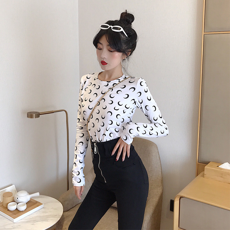 / 2018新款長袖T恤女修身打底衫高腰小腳褲外穿打底褲港風時尚套裝