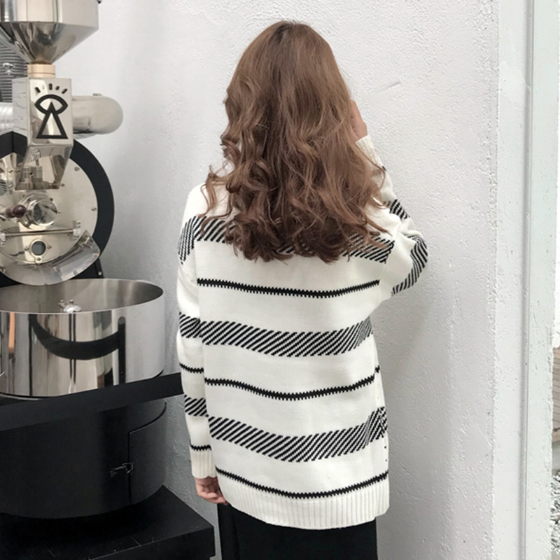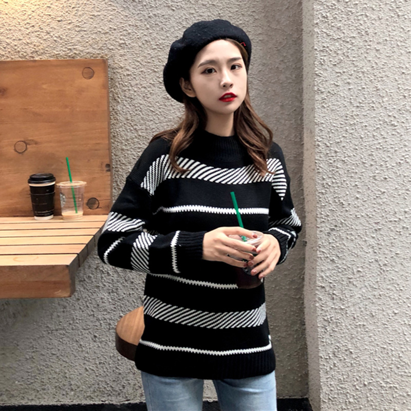 慵懶風套頭毛衣女秋裝新款學生時尚撞色針織衫韓版chic長袖上衣潮