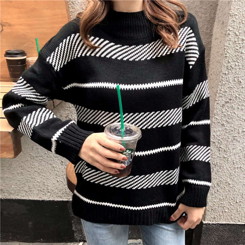 / 慵懶風套頭毛衣女秋裝新款學生時尚撞色針織衫韓版chic長袖上衣潮