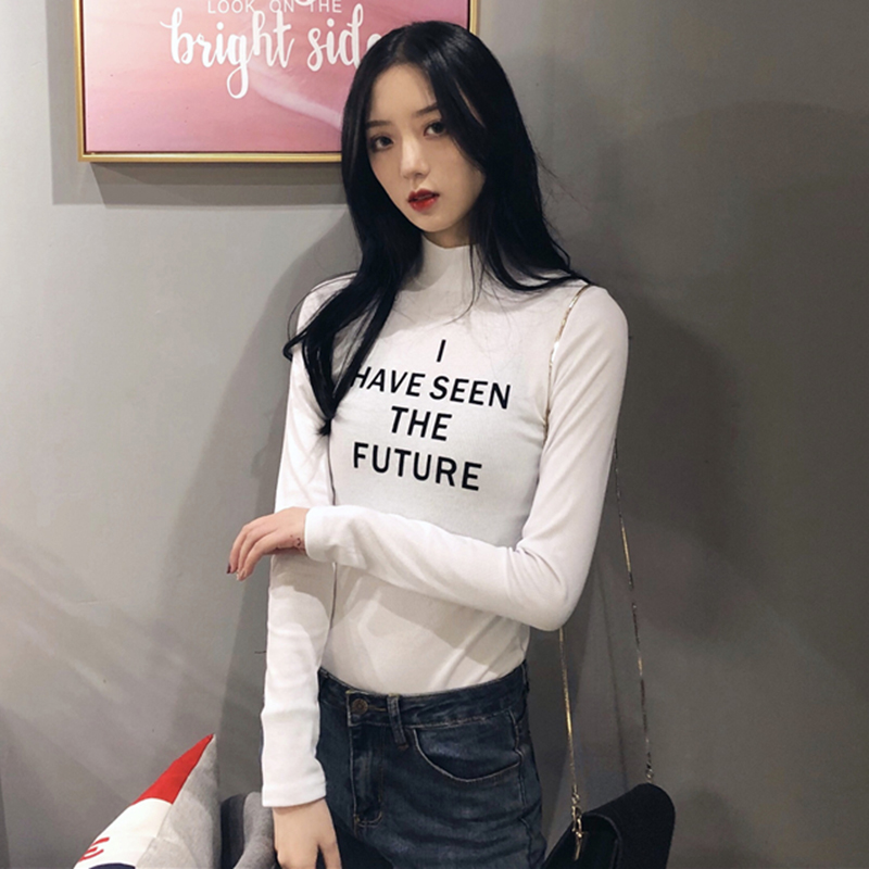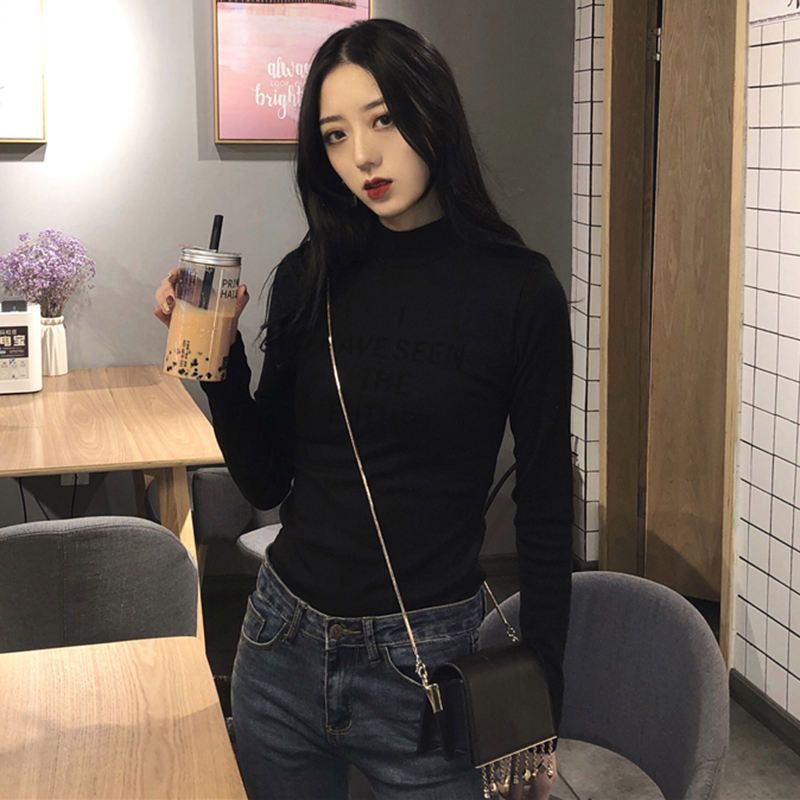 chic半高領字母修身打底衫秋冬裝2018新款韓版氣質顯瘦長袖T恤女