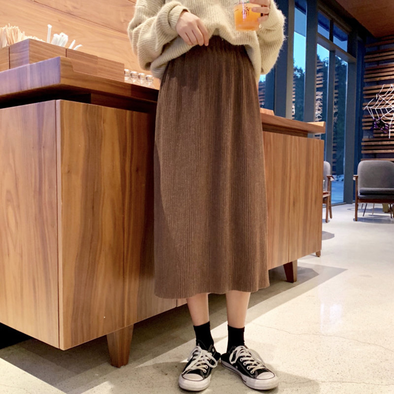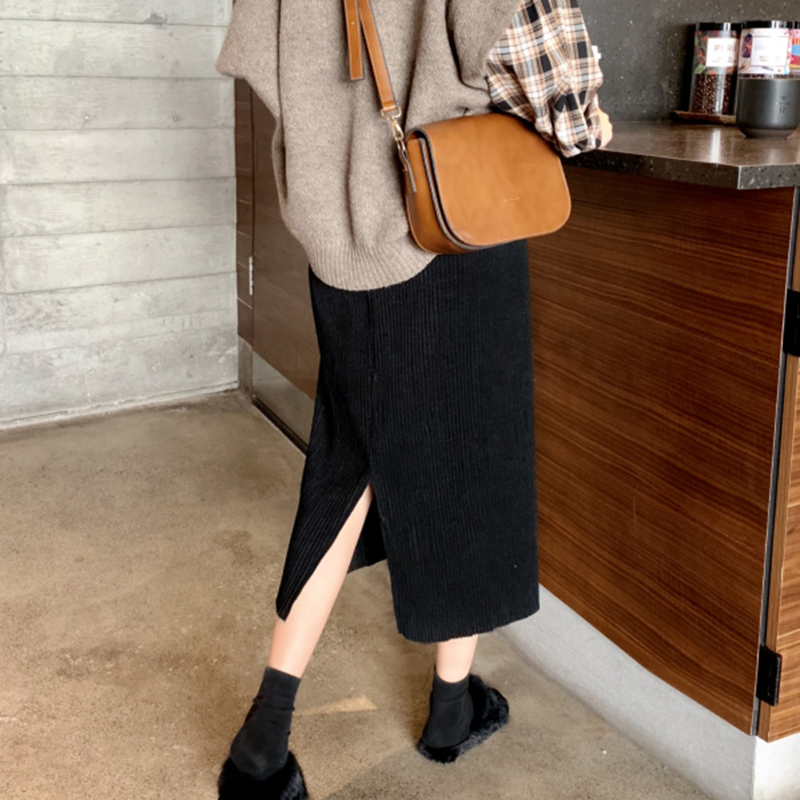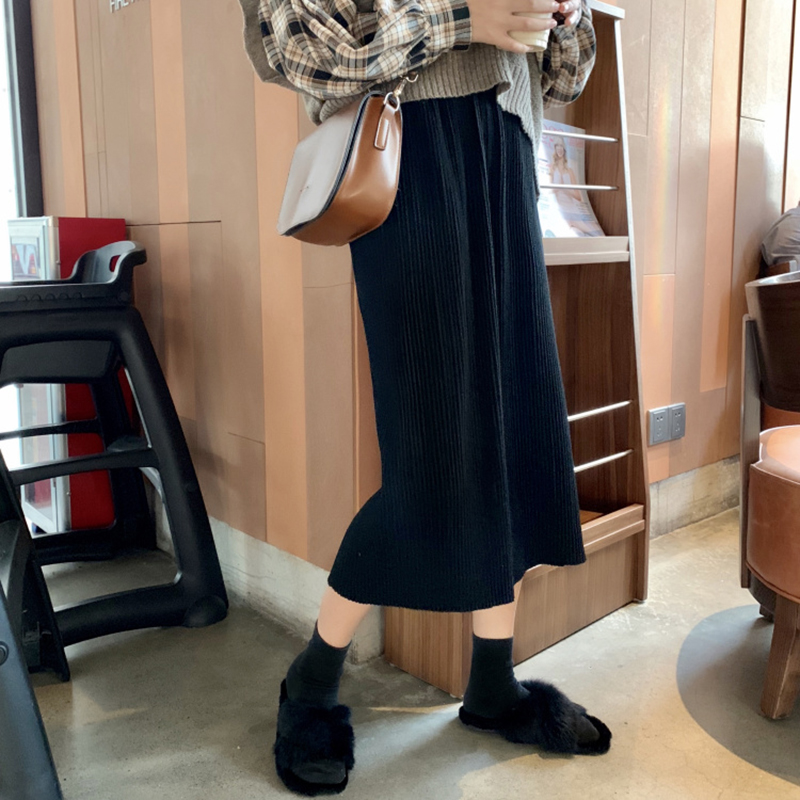 / 學生復古風高腰顯瘦黑色半身裙子女秋冬裝新款氣質開叉百褶中長裙