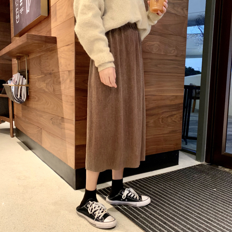 學生復古風高腰顯瘦黑色半身裙子女秋冬裝新款氣質開叉百褶中長裙