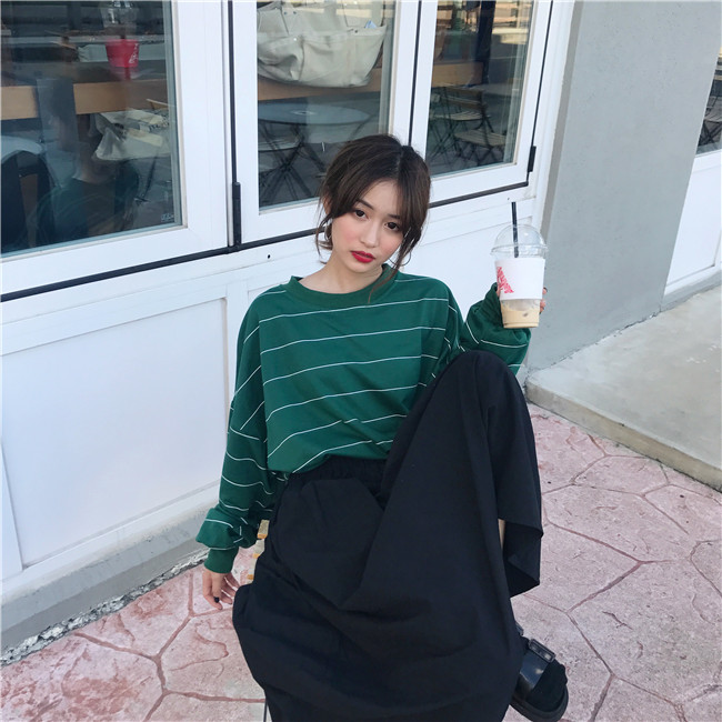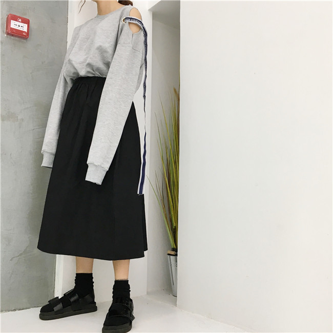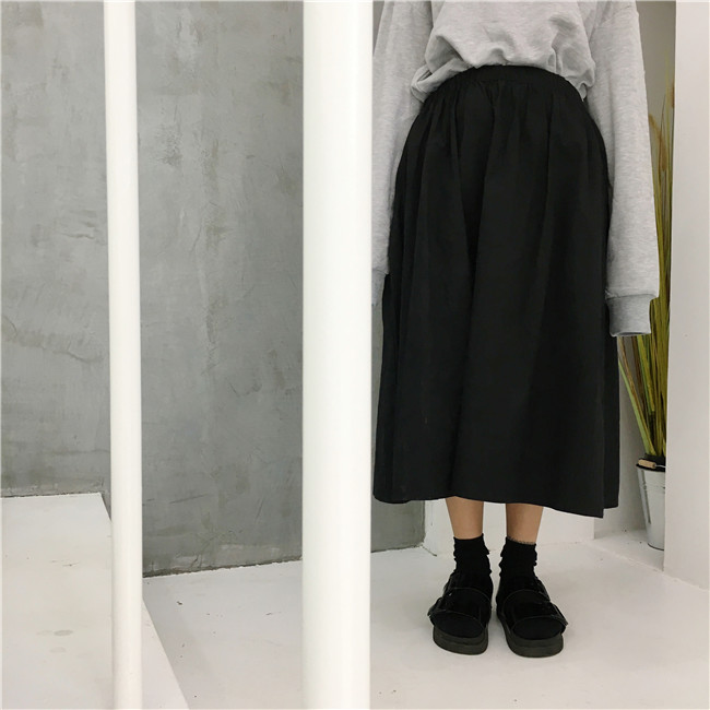 / 秋裝女裝新款韓版松緊腰皺褶百搭中長款半身裙A字裙長裙顯瘦學生