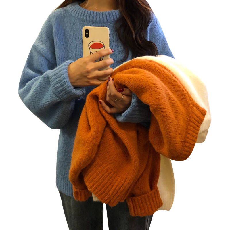 2018新款秋冬女裝韓版寬松加厚慵懶風網紅套頭針織衫毛衣上衣外套