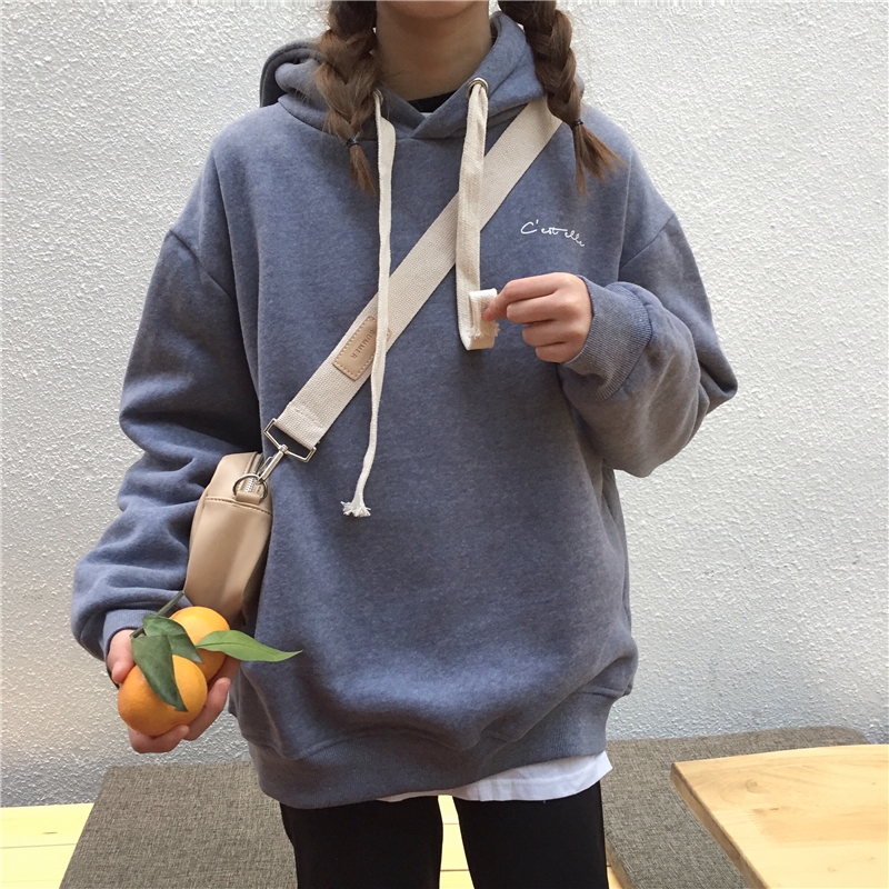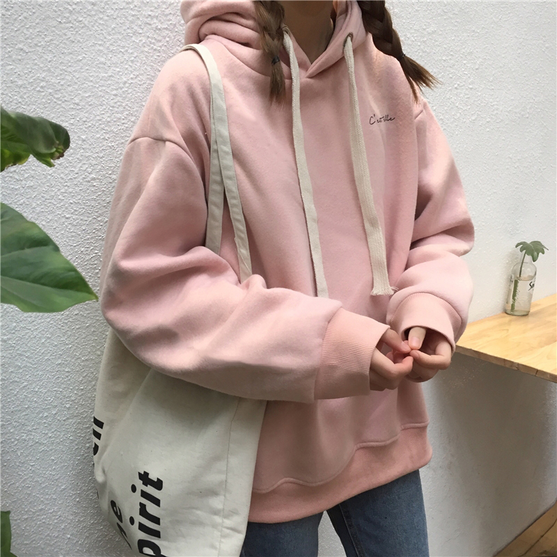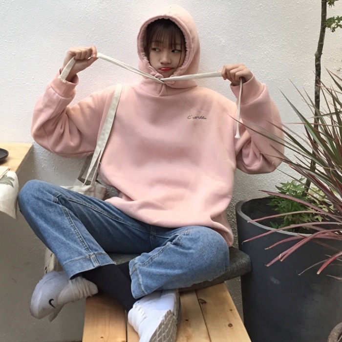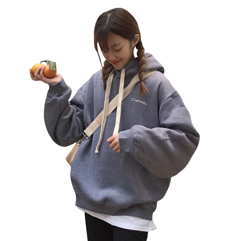 / 秋冬女裝韓版中長款慵懶風寬松字母連帽加絨pp home超火衛衣外套