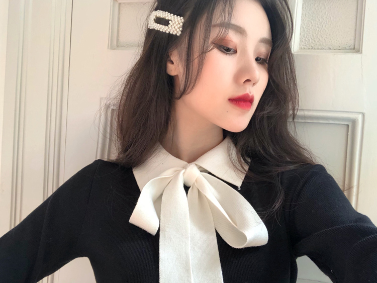 / 港味特色女裝秋2018新款女綁蝴蝶結設計韓版氣質顯瘦針織連衣裙女