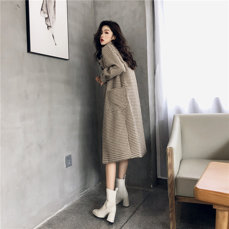 2018秋冬新款復古格紋西服領韓版chic寬松顯瘦氣質長款毛呢外套女
