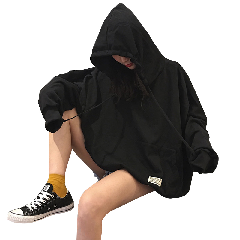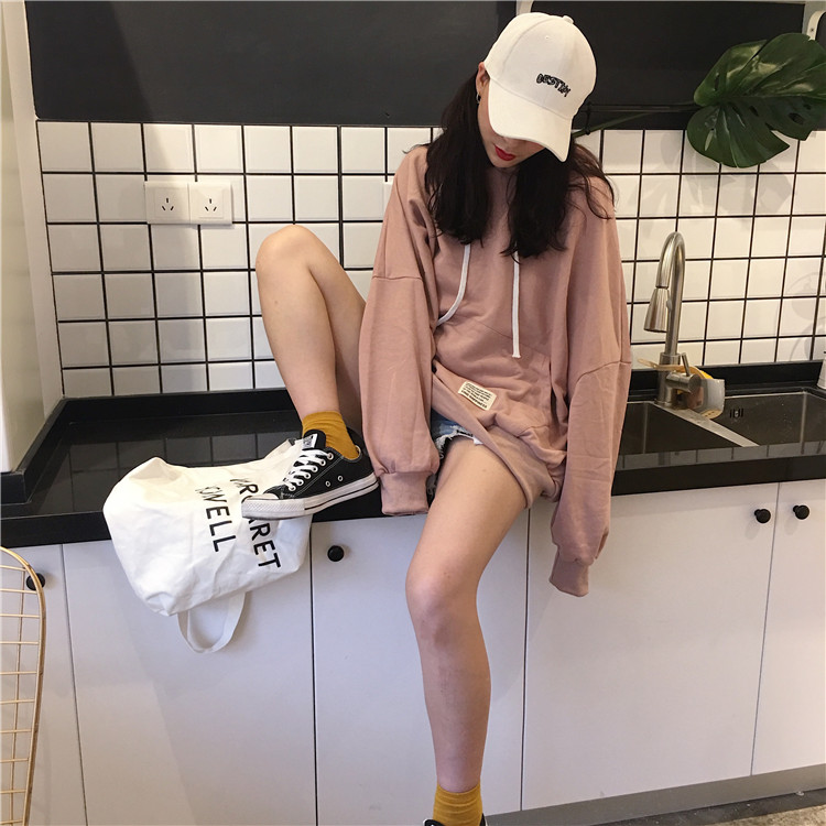 / 秋裝女裝新款韓版原宿風個性貼標寬松連帽長袖衛衣情侶款外套學生