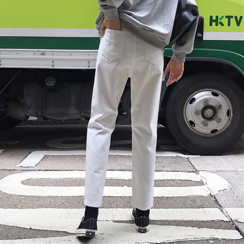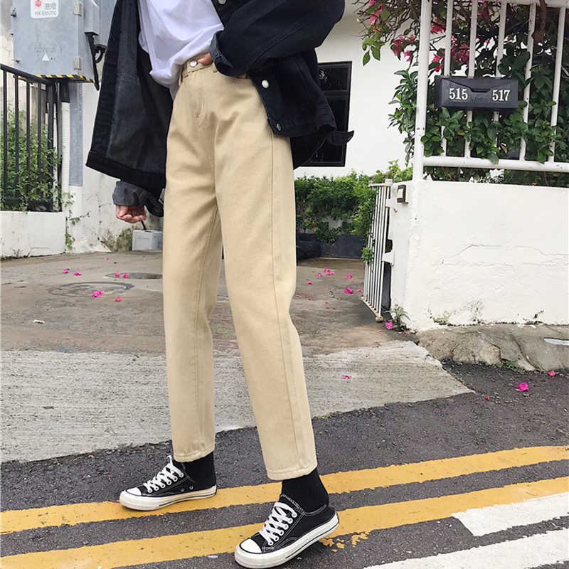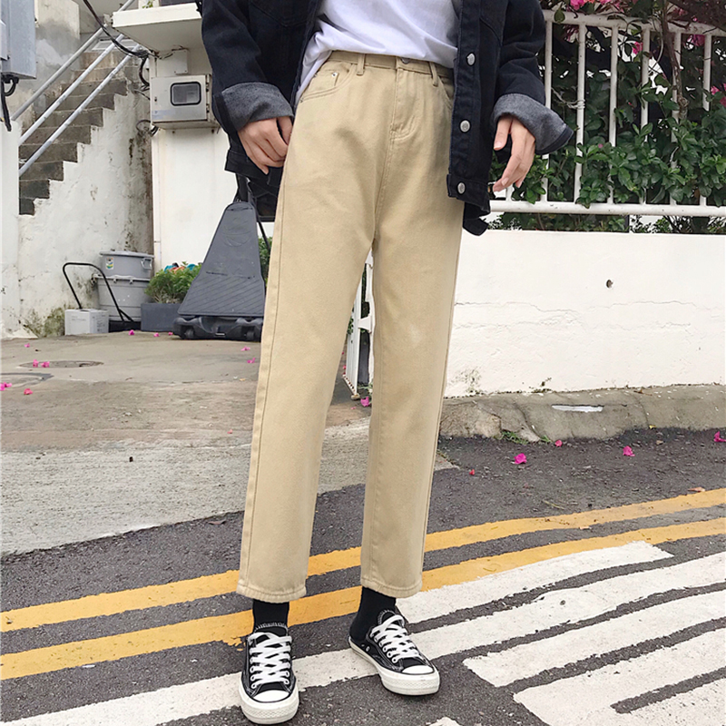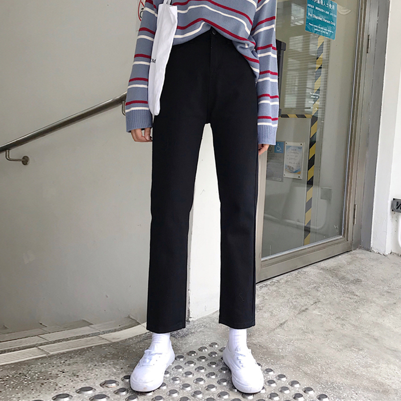 / 韓版學生高腰顯瘦黑色牛仔褲女秋冬裝新款復古寬松直筒休閑長褲子