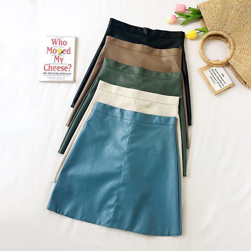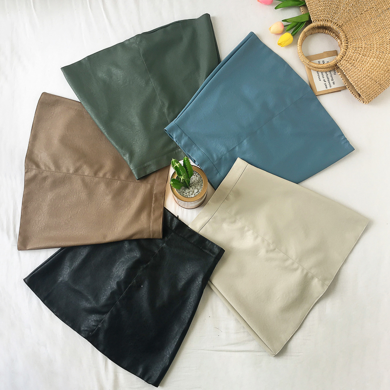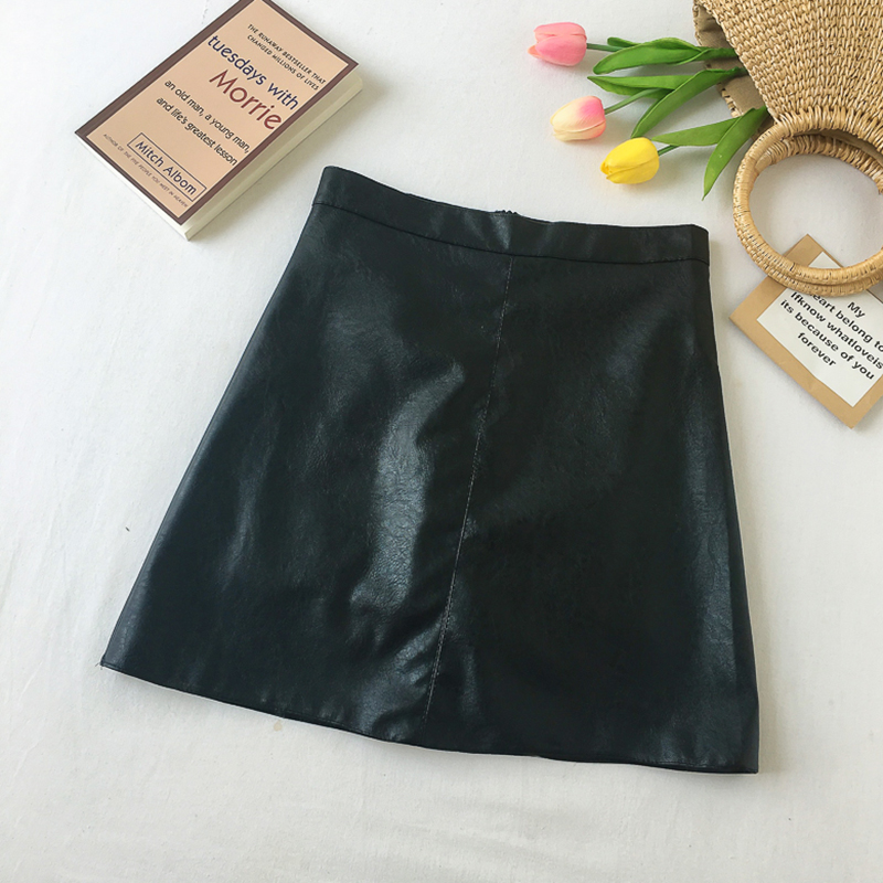 / 韓版高腰顯瘦時尚PU皮半身裙子女秋冬裝新款學生復古黑色A字短裙