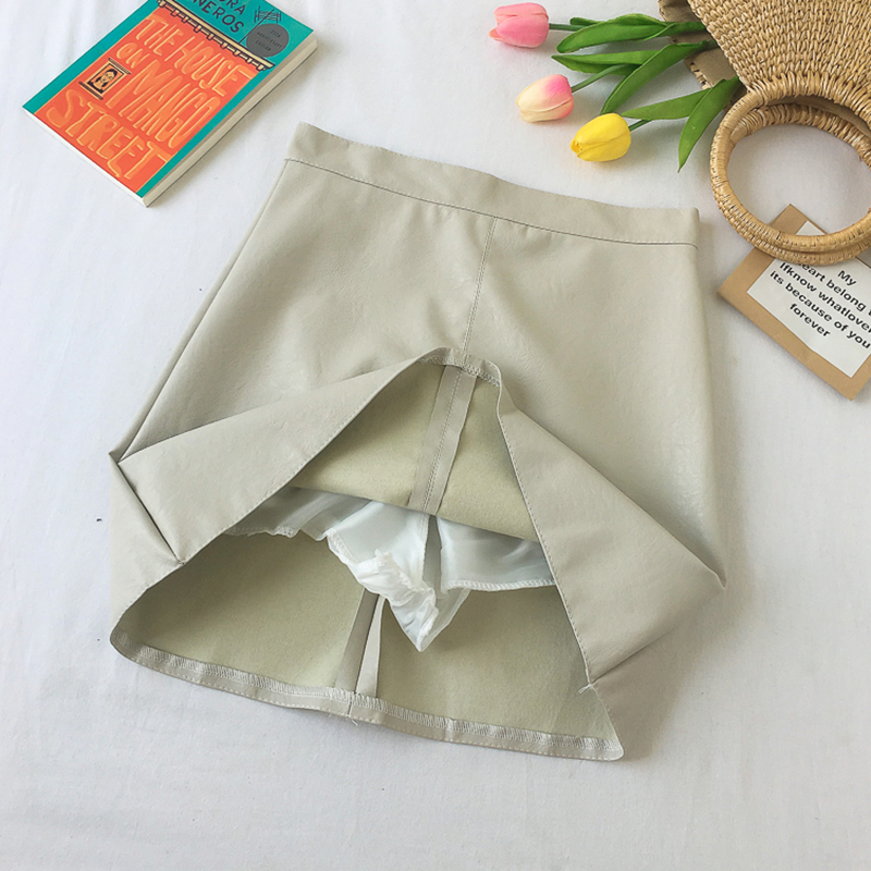 韓版高腰顯瘦時尚PU皮半身裙子女秋冬裝新款學生復古黑色A字短裙