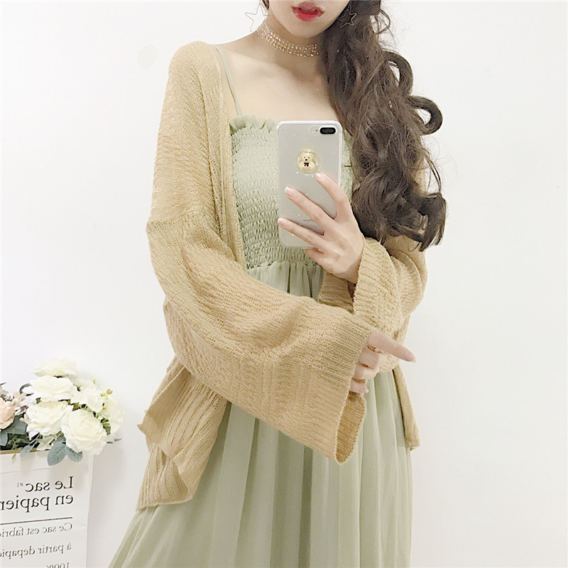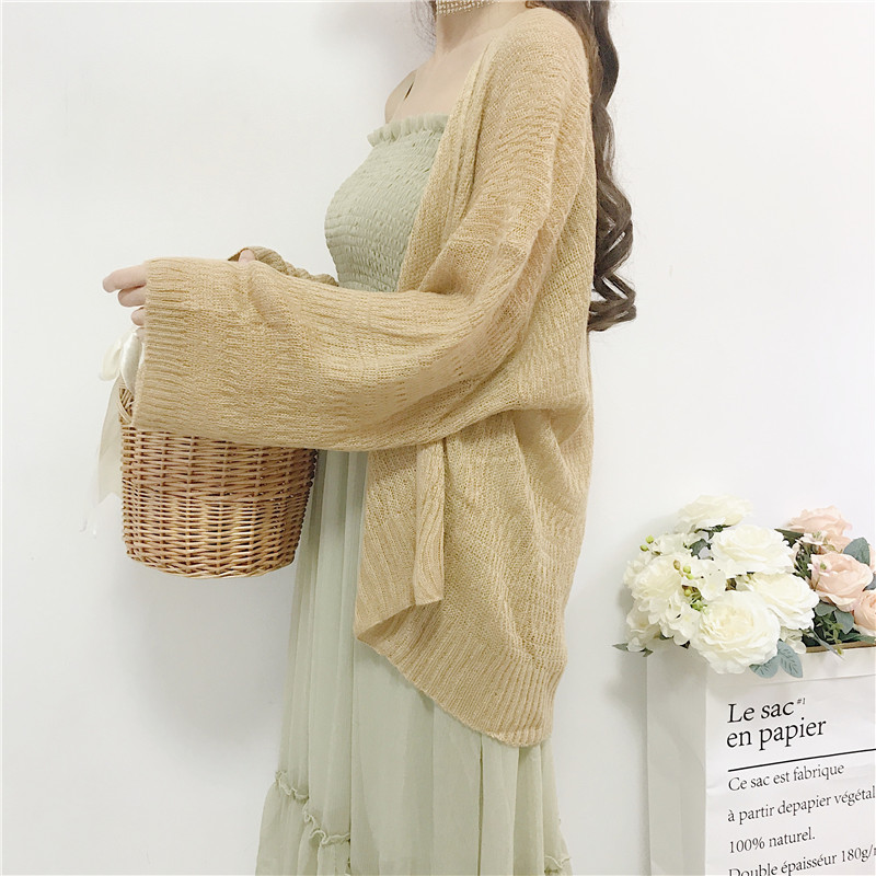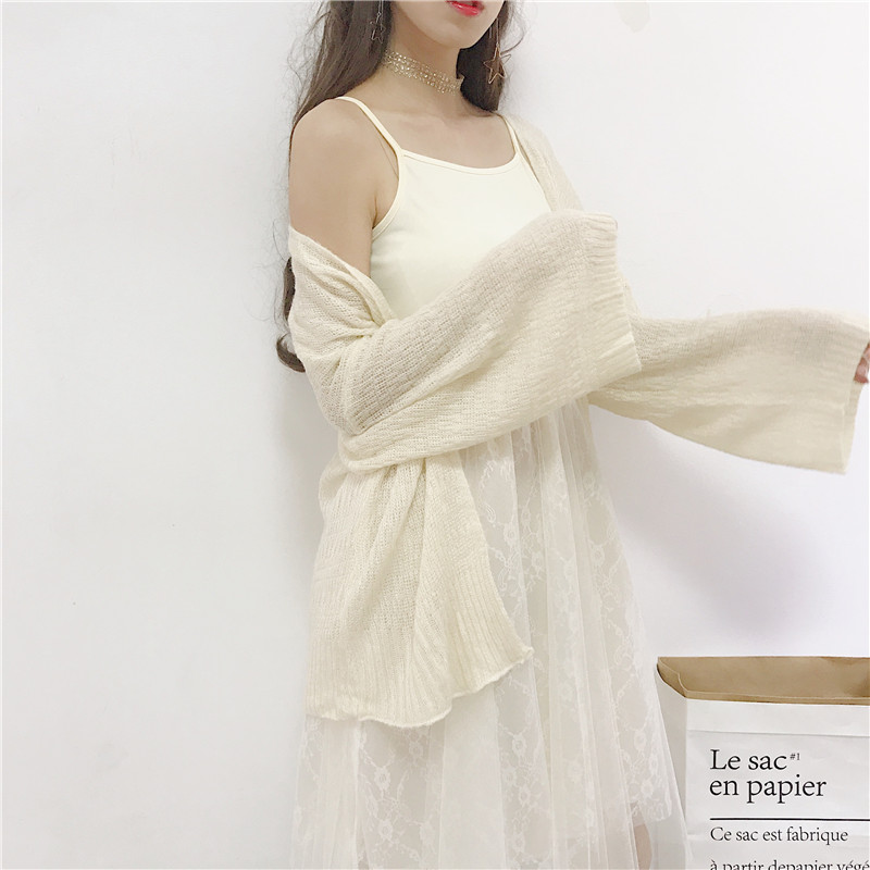 / 夏季新款女裝慵懶風百搭寬松顯瘦學生長袖薄款防曬針織開衫外套女