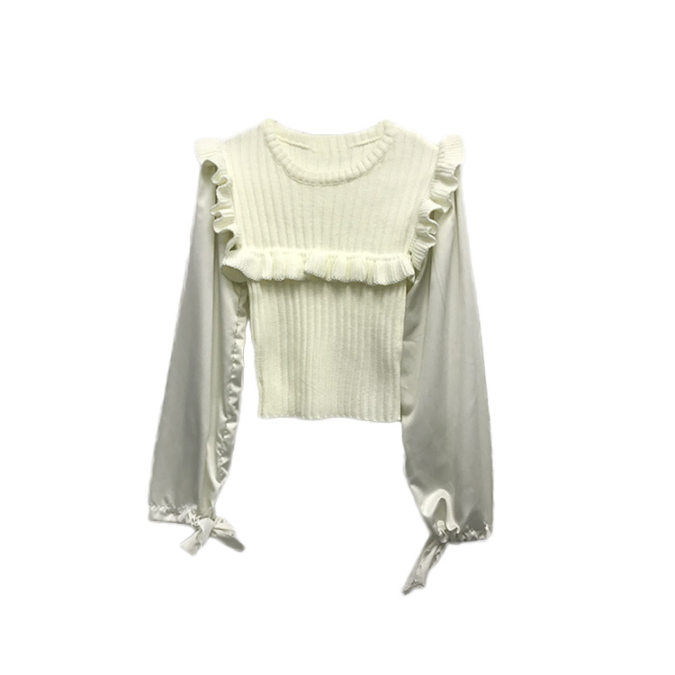 / 網紅款2018新款秋慵懶風毛衣女長袖拼接荷葉邊圓領假兩件針織衫潮