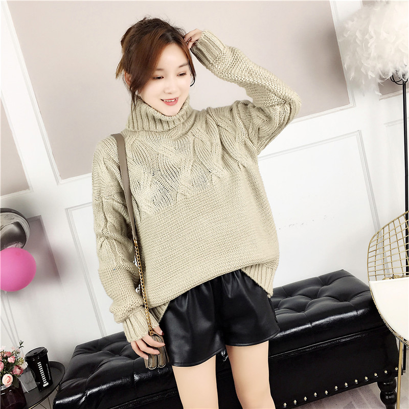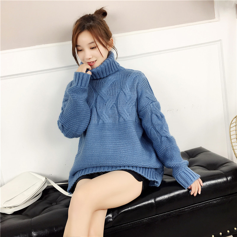 2018冬裝新款韓版寬松麻花套頭高領毛衣時尚百搭外穿打底針織衫女