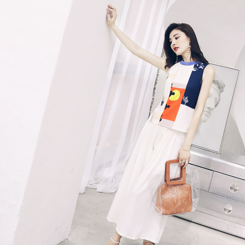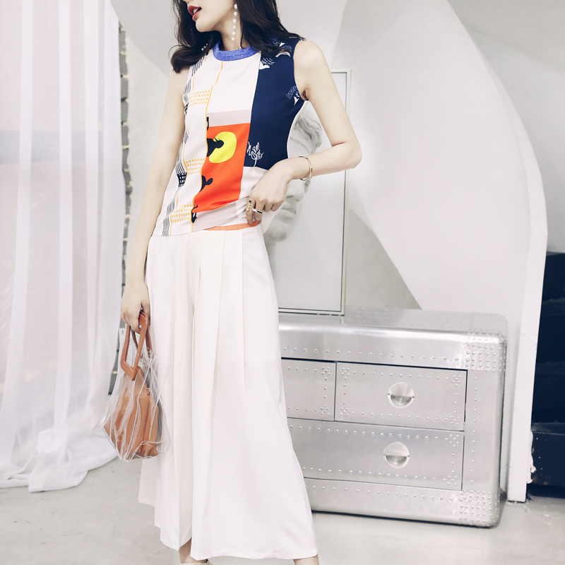 / s秀洋氣名媛套裝女夏2018新款歐洲站闊腿褲無袖上衣時尚兩件套裝