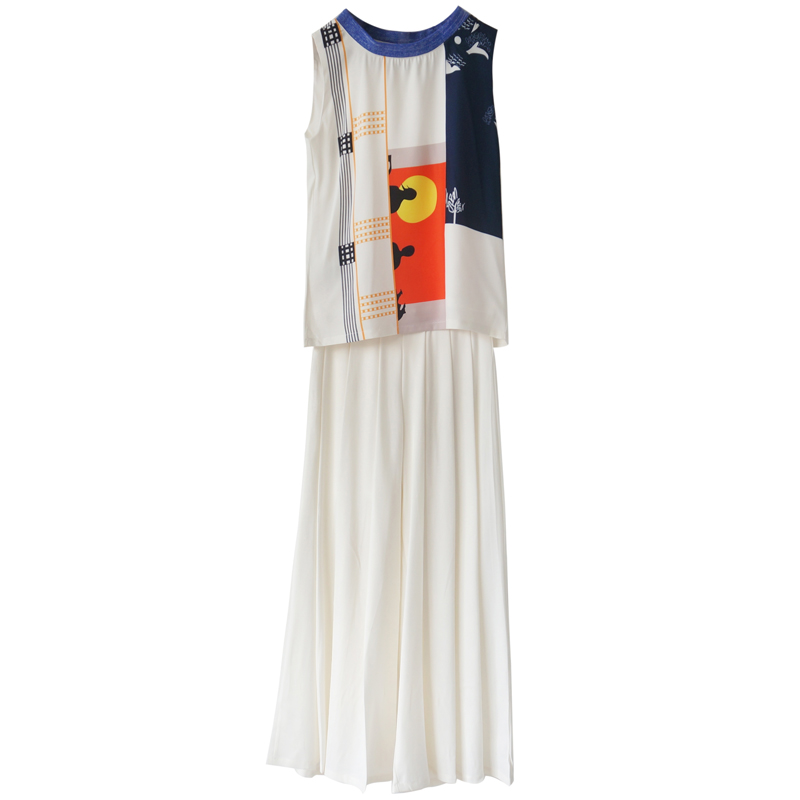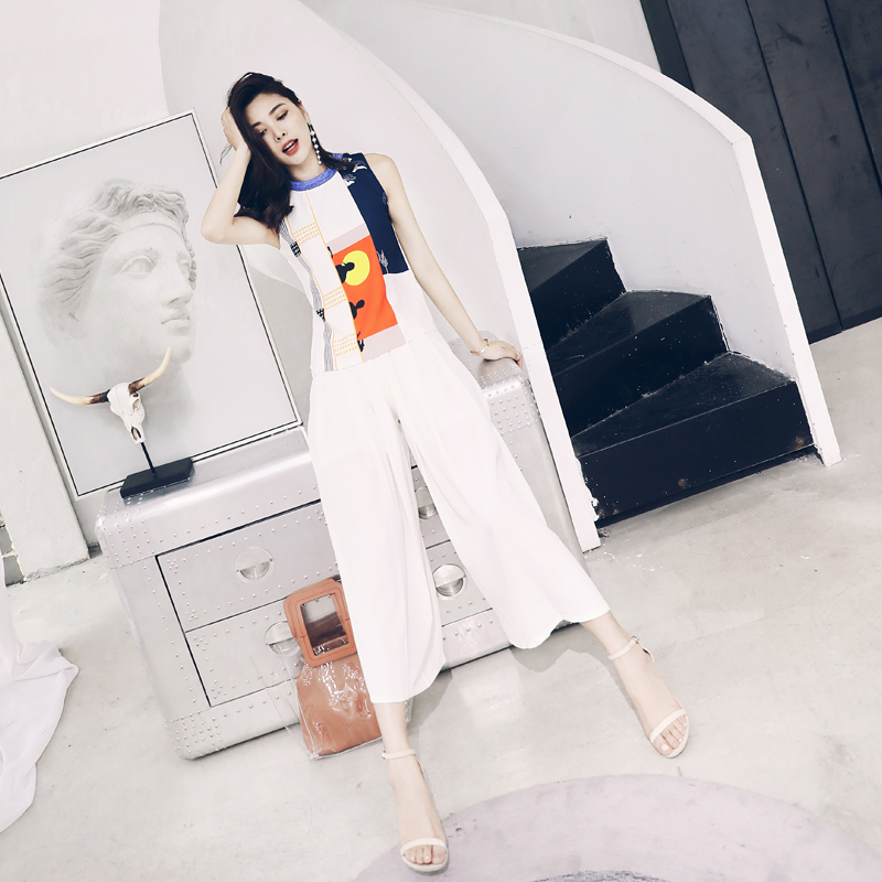 s秀洋氣名媛套裝女夏2018新款歐洲站闊腿褲無袖上衣時尚兩件套裝