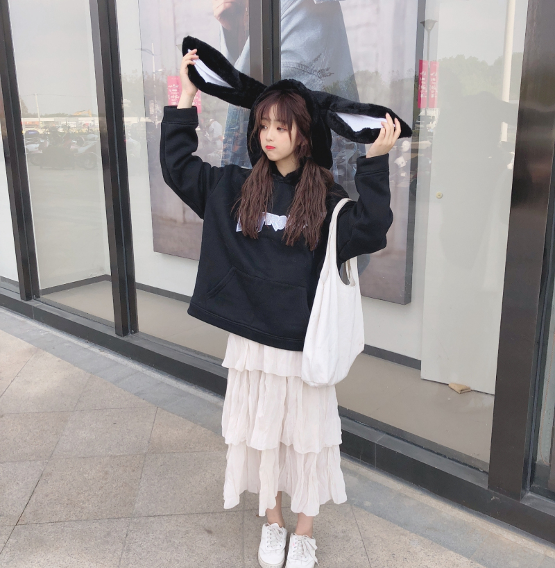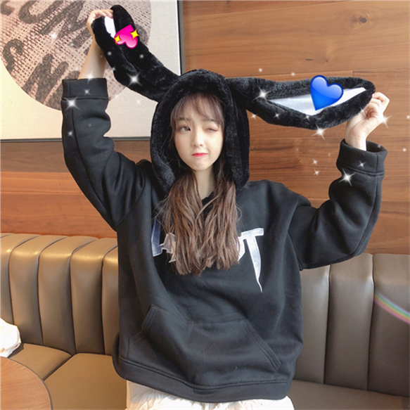 秋冬韓版中長款情侶閨蜜字母卡通寬松加絨加厚連帽衛衣上衣外套女