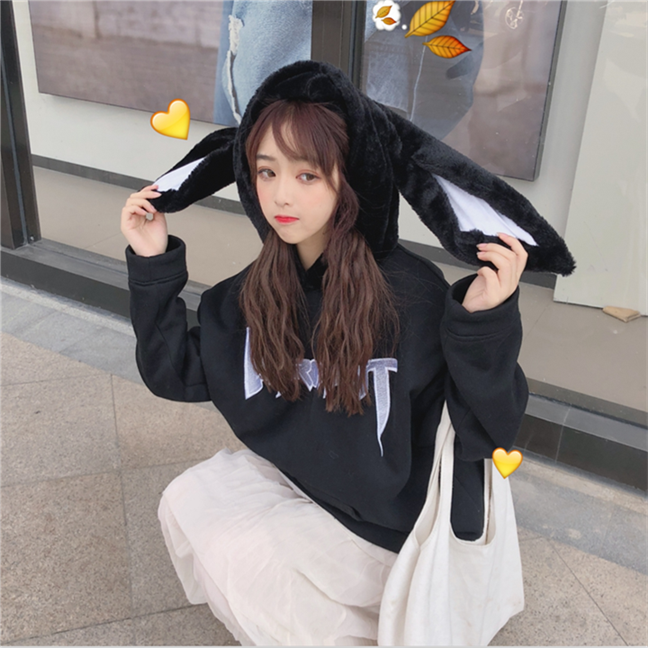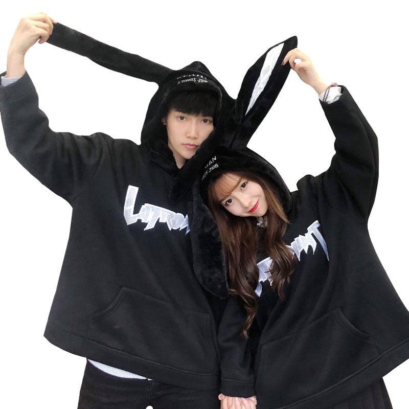 / 秋冬韓版中長款情侶閨蜜字母卡通寬松加絨加厚連帽衛衣上衣外套女