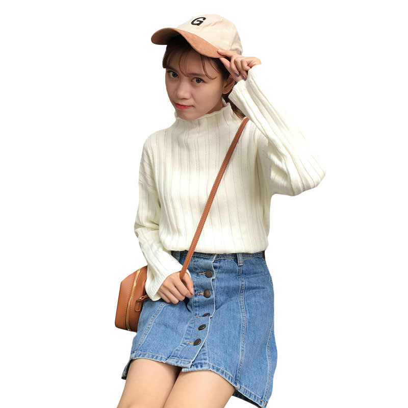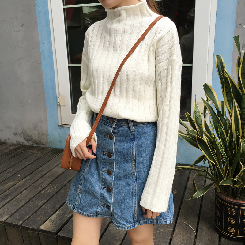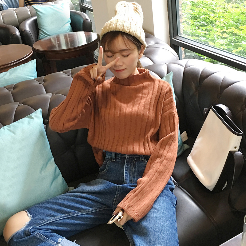 / 秋冬女裝韓版寬松慵懶風半高領坑條長袖套頭網紅針織衫毛衣上衣潮