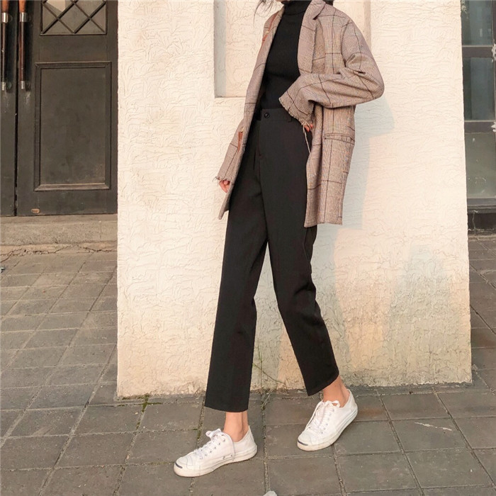 春秋四季百搭簡約直筒九分煙管西裝褲韓版氣質純色顯瘦休閑褲潮女