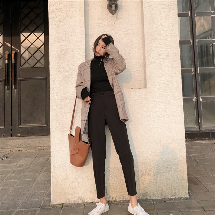 / 秋季chic風顯瘦高腰純色九分小腳休閑褲氣質百搭新款學生哈倫褲潮