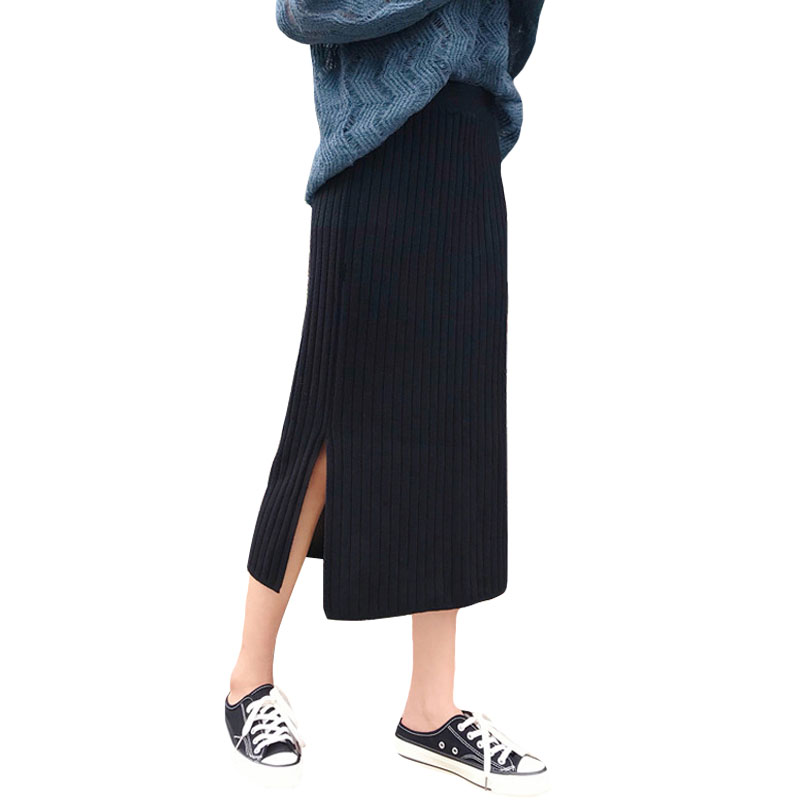 秋季韓版chic復古港味開叉包臀裙半身裙高腰針織裙長裙學生裙子女