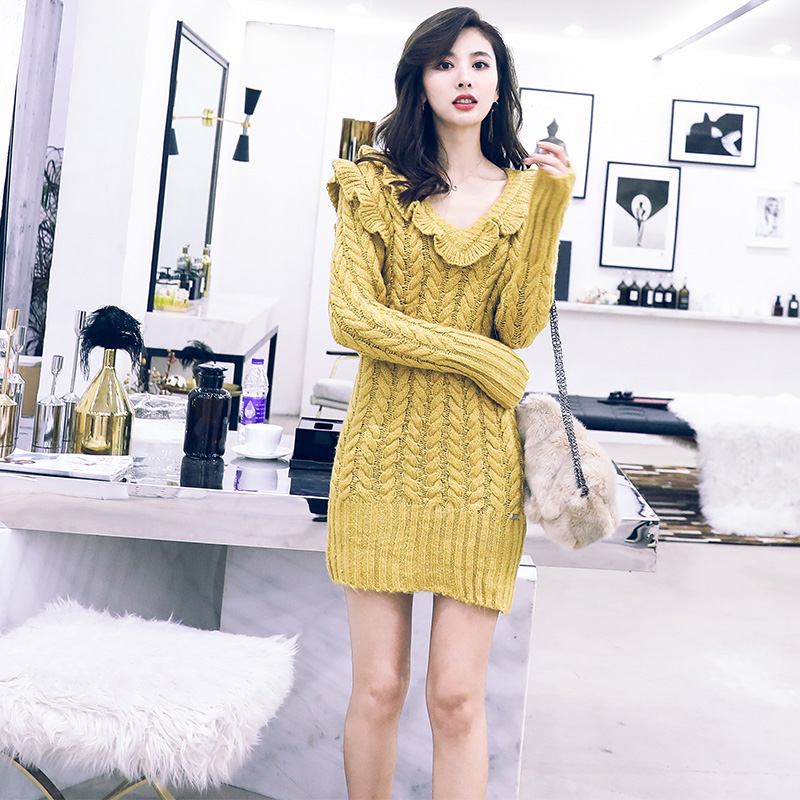 名媛氣質毛衣女初秋裝網紅款溫柔風2018新款中長款針織打底連衣裙