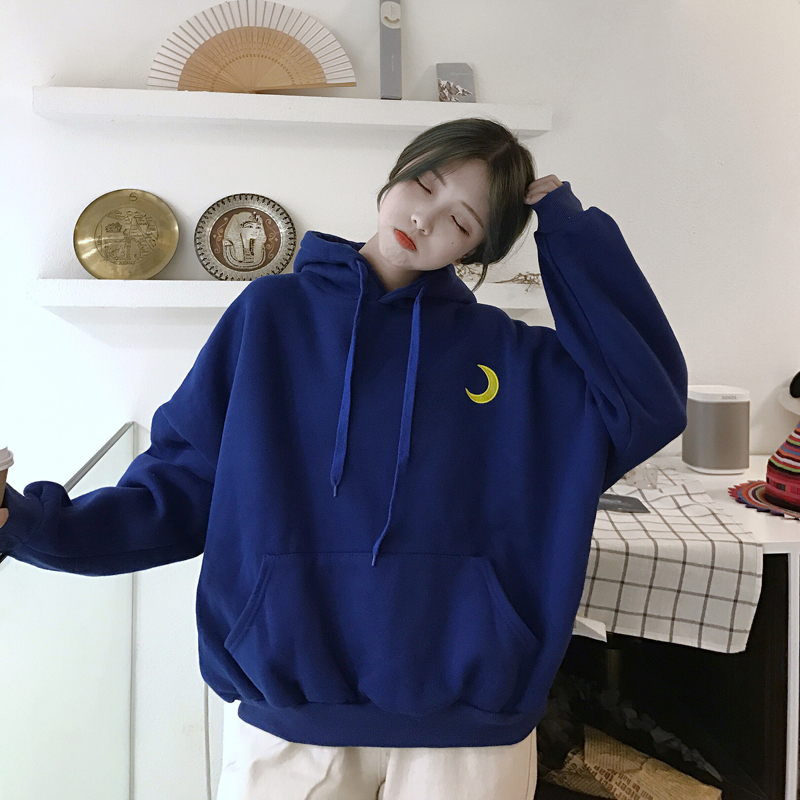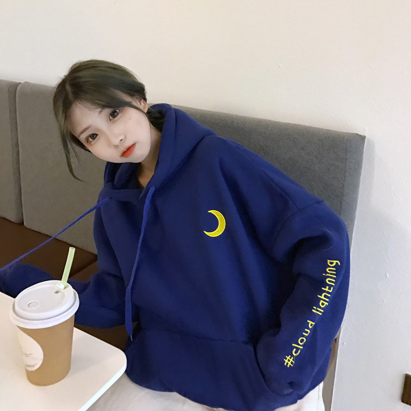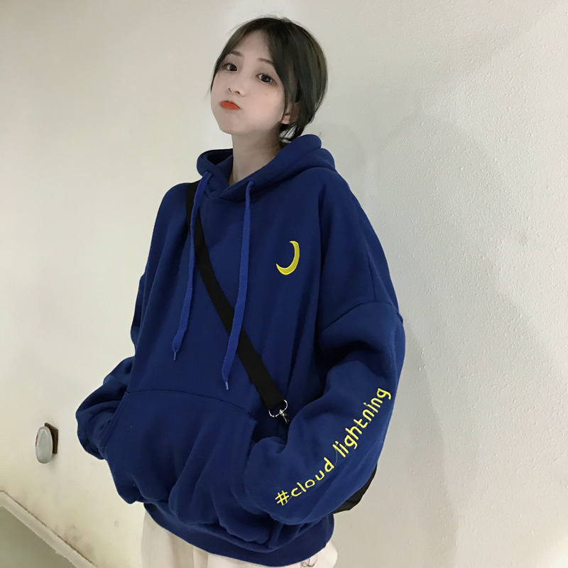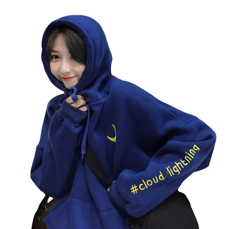 / 秋裝女裝韓版學院風寬松百搭連帽刺繡衛衣中長款長袖套頭上衣外套