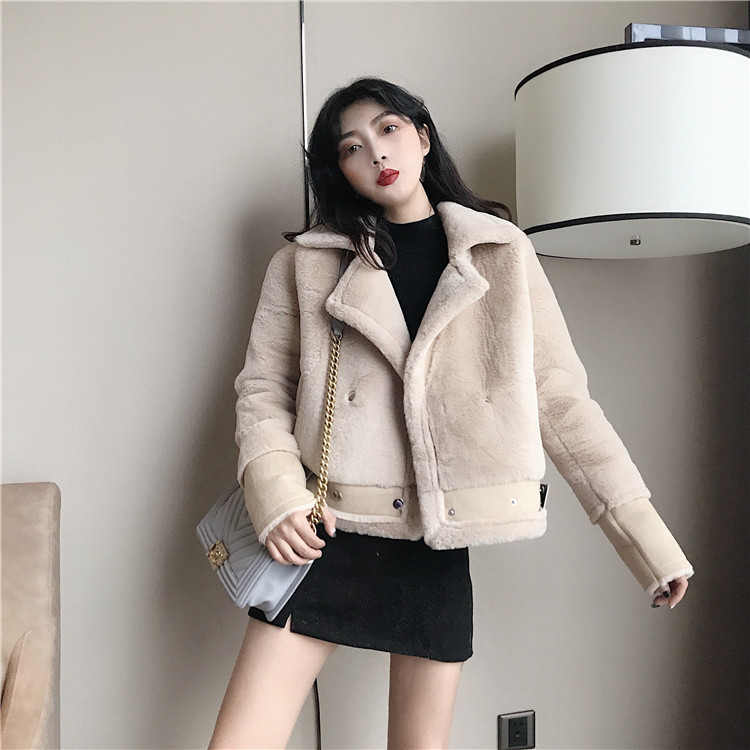 / 港風網紅同款時尚chic氣質大翻領兔絨加厚外套女冬裝2018新款上衣