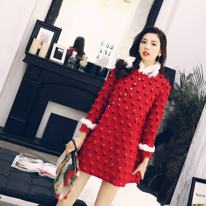 / 甜美連衣裙2018冬季新款中國風改良旗袍少女夾棉裙子加厚復古棉衣