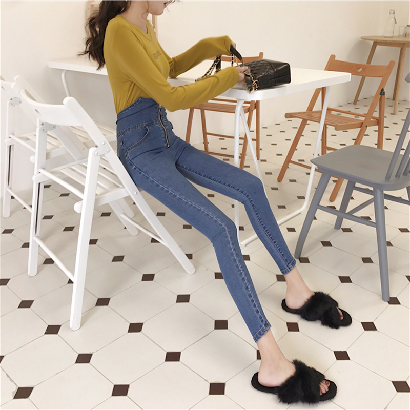 / 小腳褲女秋冬裝2018新款韓版拉鏈高腰顯瘦鉛筆褲修身彈力牛仔長褲