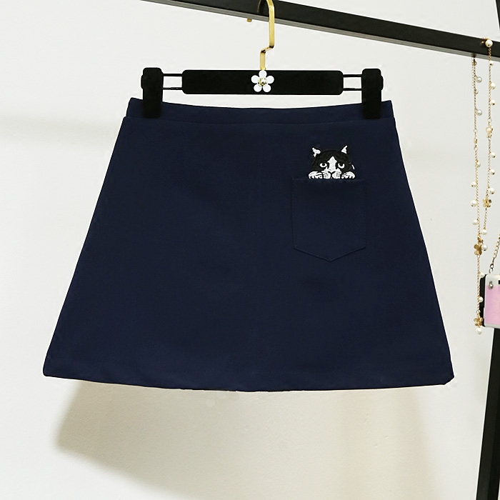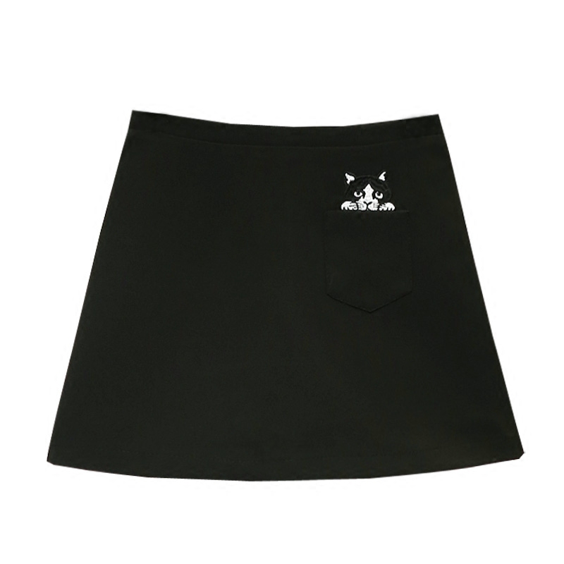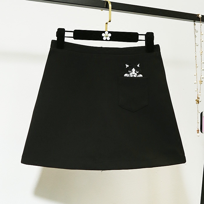 半身裙春夏新款韓版女裝春季高腰顯瘦刺繡貓咪百搭A字裙短裙
