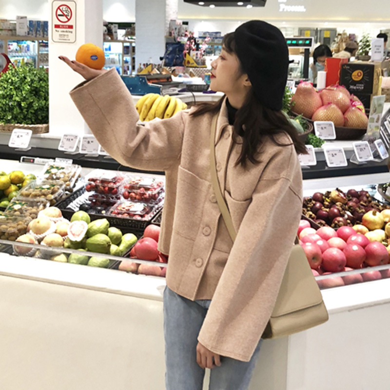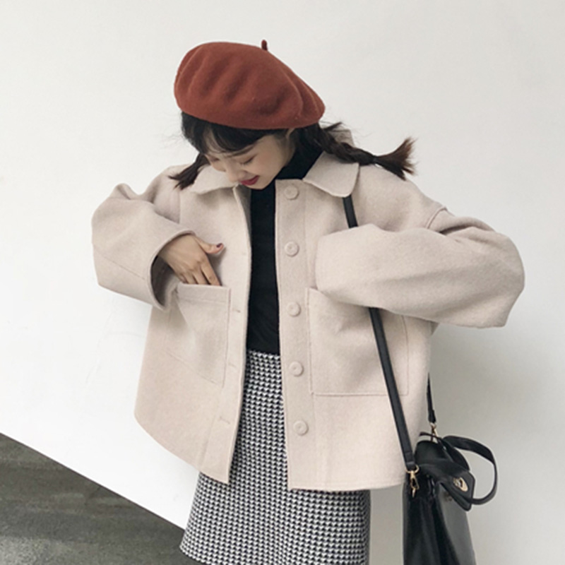 / 簡約純色毛呢外套秋冬女裝新款流行呢子大衣學生寬松長袖開衫上衣