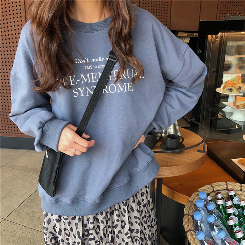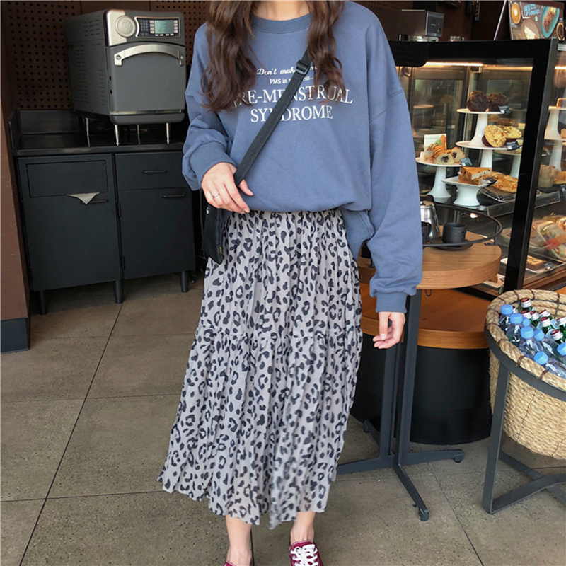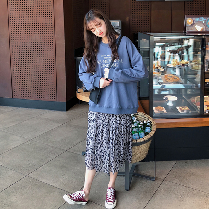 / 秋冬新款心機女套裝寬松字母印花衛衣氣質女神高腰豹紋雪紡半身裙