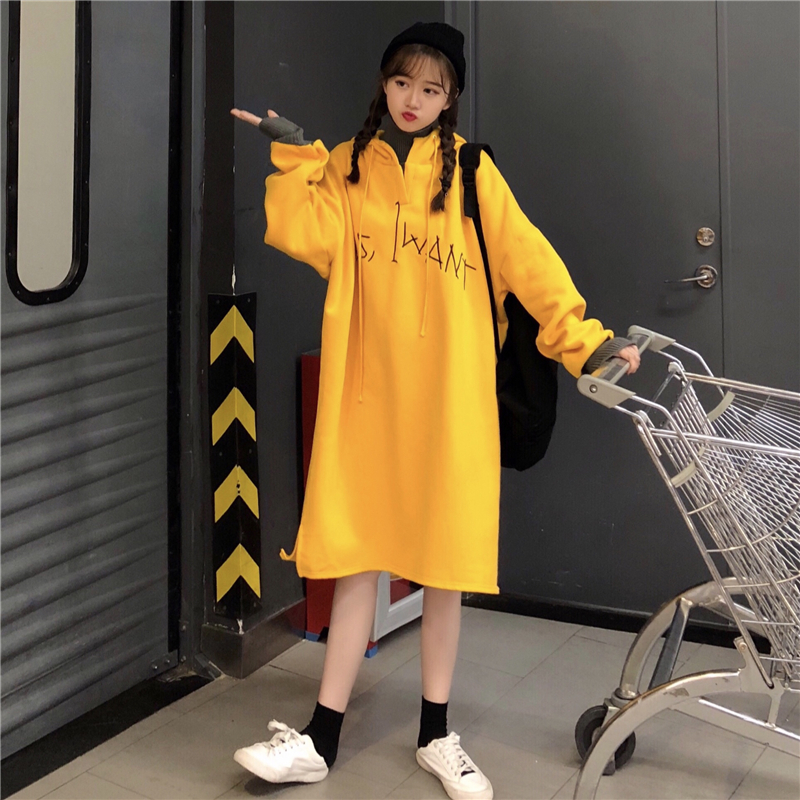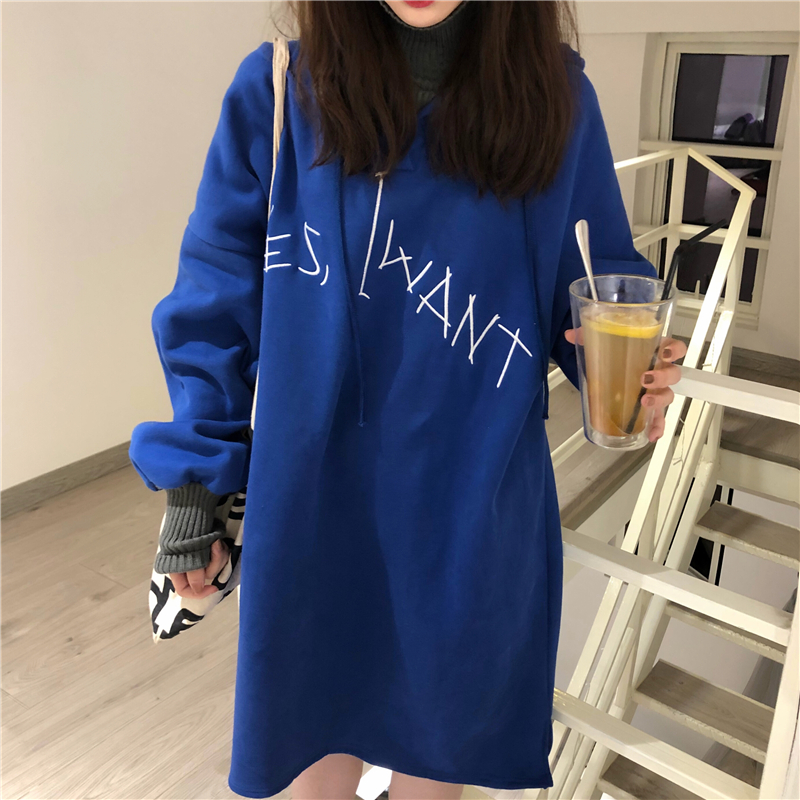 2018新款秋冬女裝韓版中長款慵懶風寬松拼接刺繡加絨加厚衛衣外套