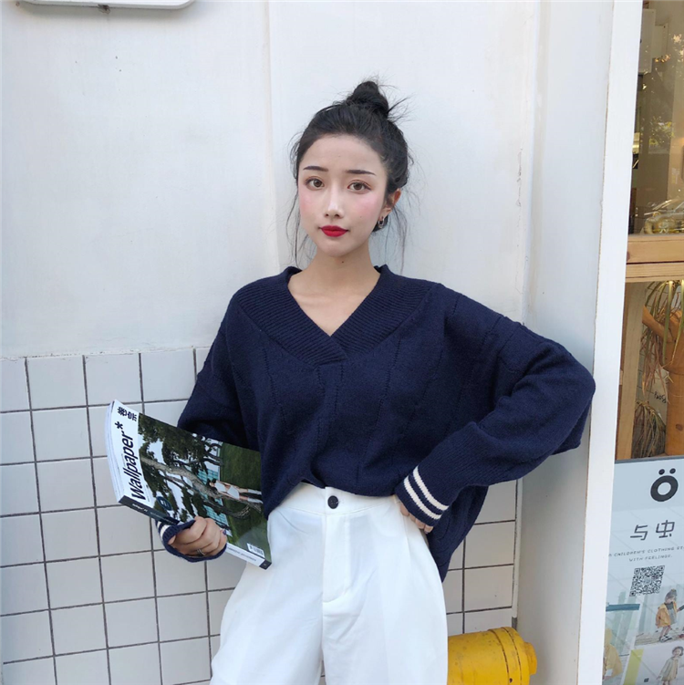 怕冷或是保守的MM可以把衣領翻上去就變成了基礎款V領毛衣