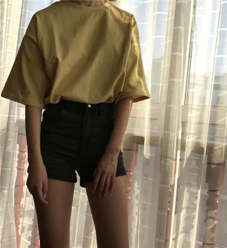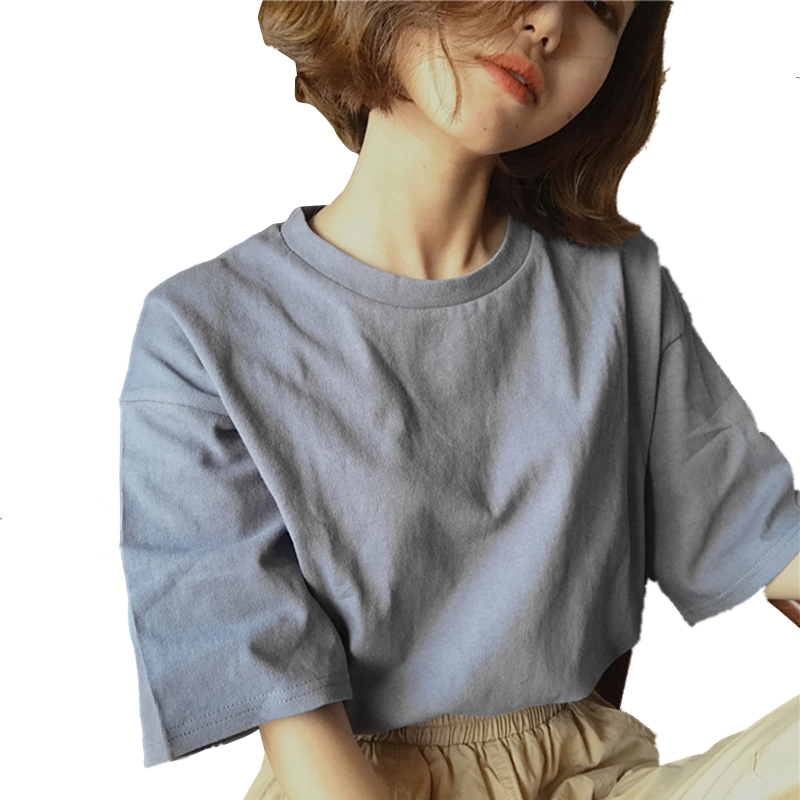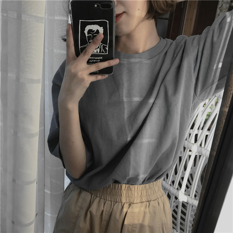 / 春裝女裝韓版寬松復古百搭基礎款純色短袖T恤學生上衣圓領打底衫