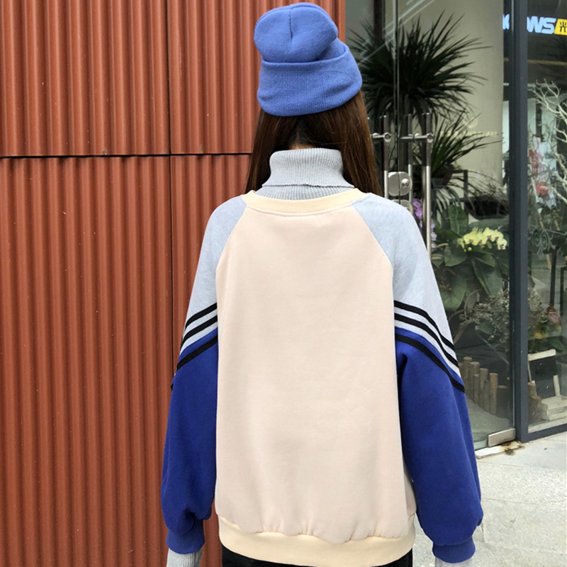 / 韓版秋冬女裝2018新款拼接高領撞色加絨衛衣學生寬松百搭字母外套