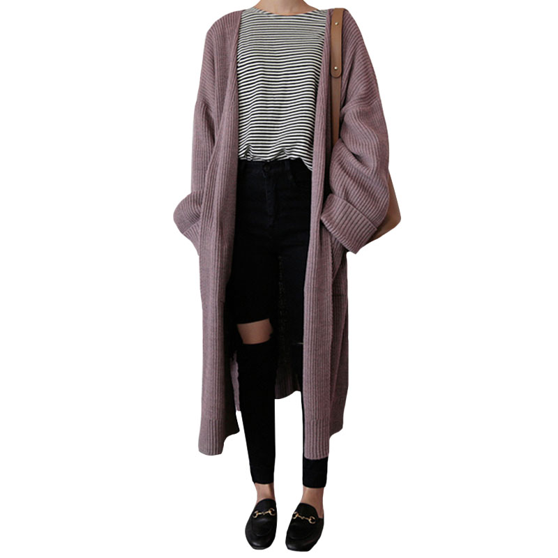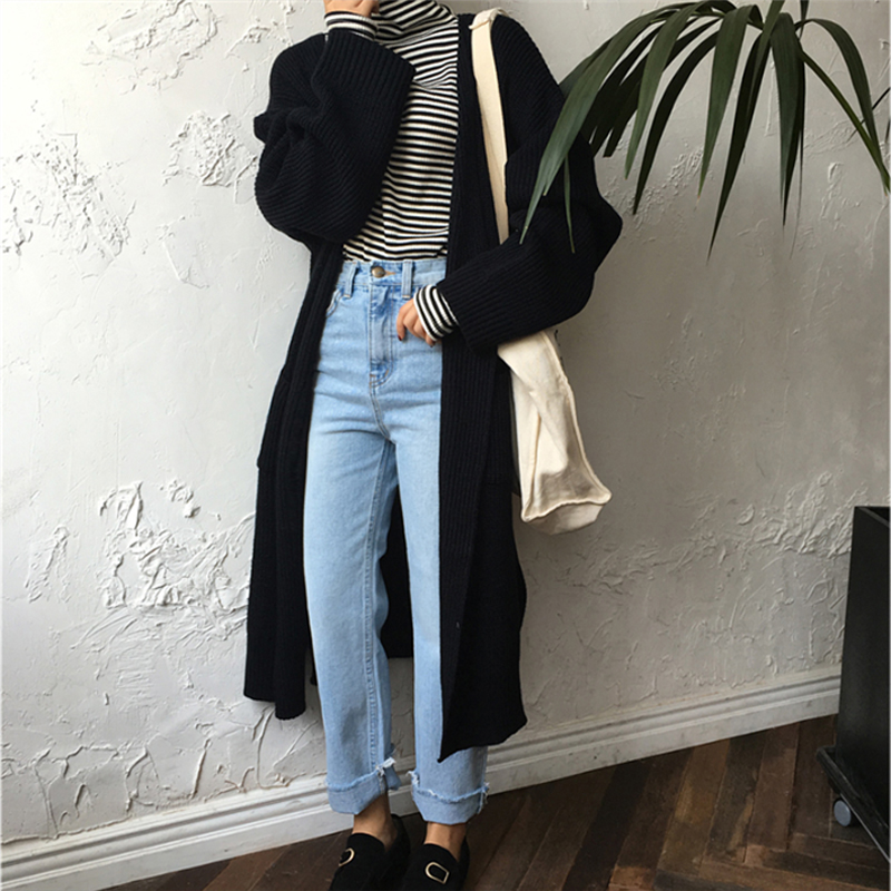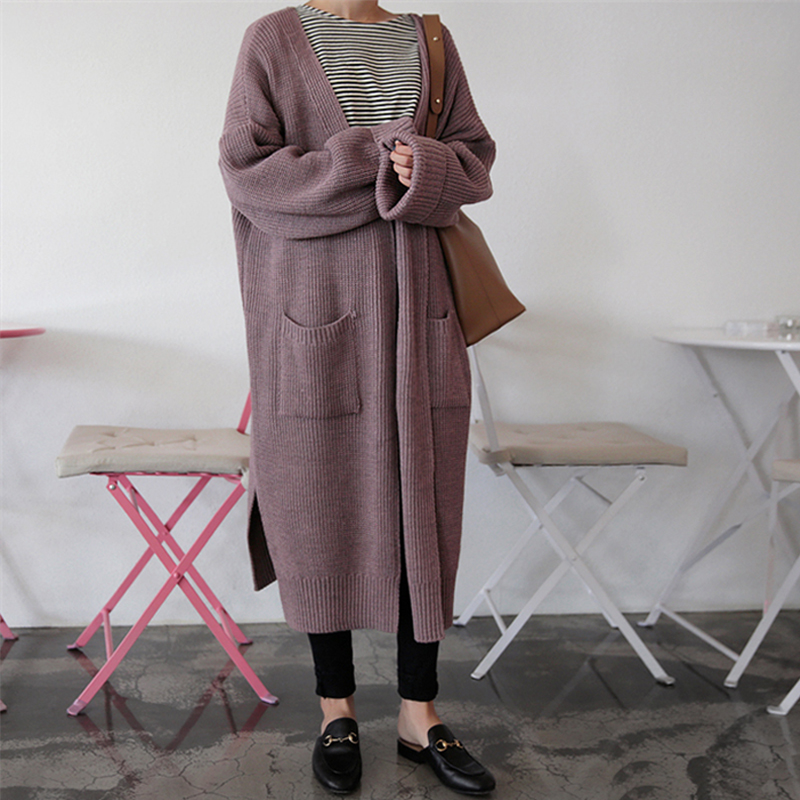 / 秋冬女裝韓版中長款寬松純色毛衣開衫慵懶風長袖針織衫上衣外套潮