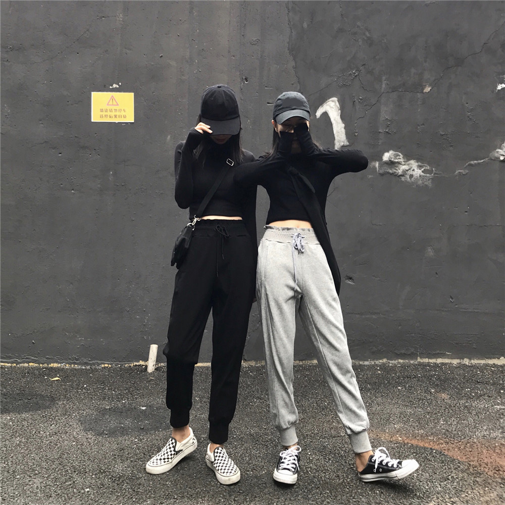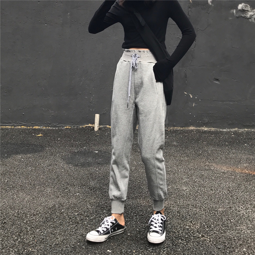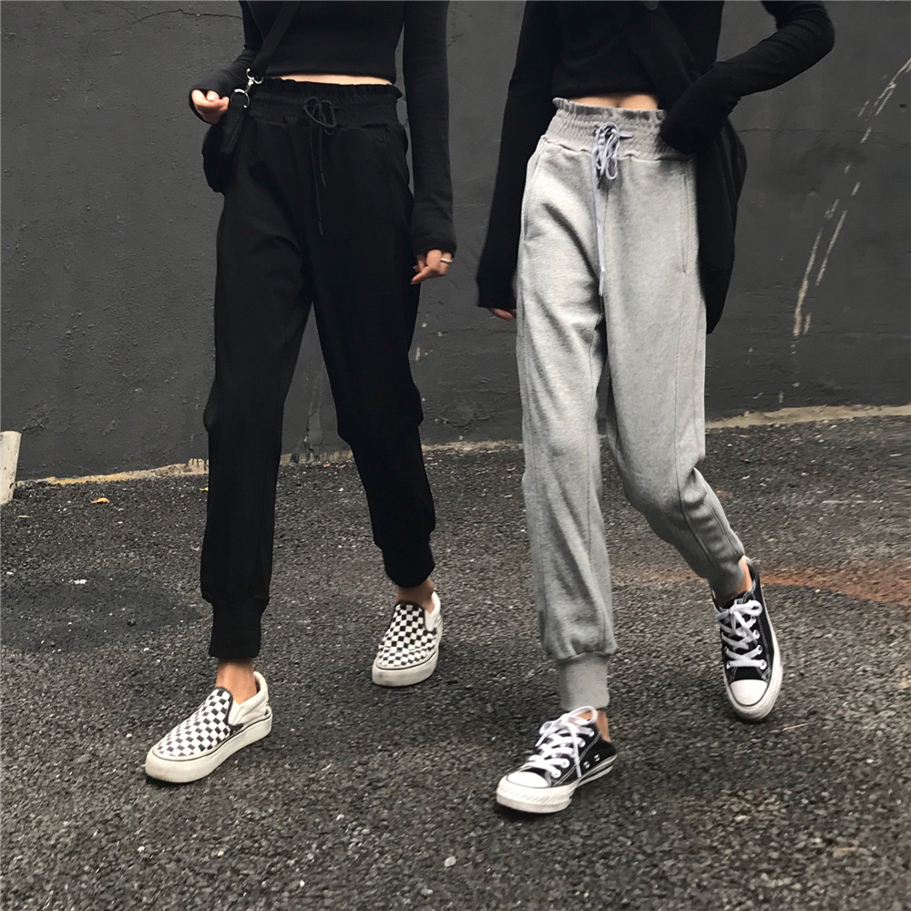 / 褲子女秋冬季新款復古百搭高腰顯瘦小腳九分褲哈倫褲系帶休閑衛褲