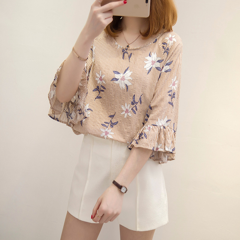 / 夏裝新款條紋襯衫女寬松韓風chic半袖襯衣女小清新上衣韓范