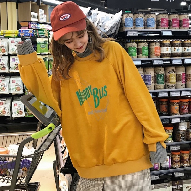 / 2018新款秋冬韓版原宿風寬松字母拼接高領加絨加厚超火衛衣外套女