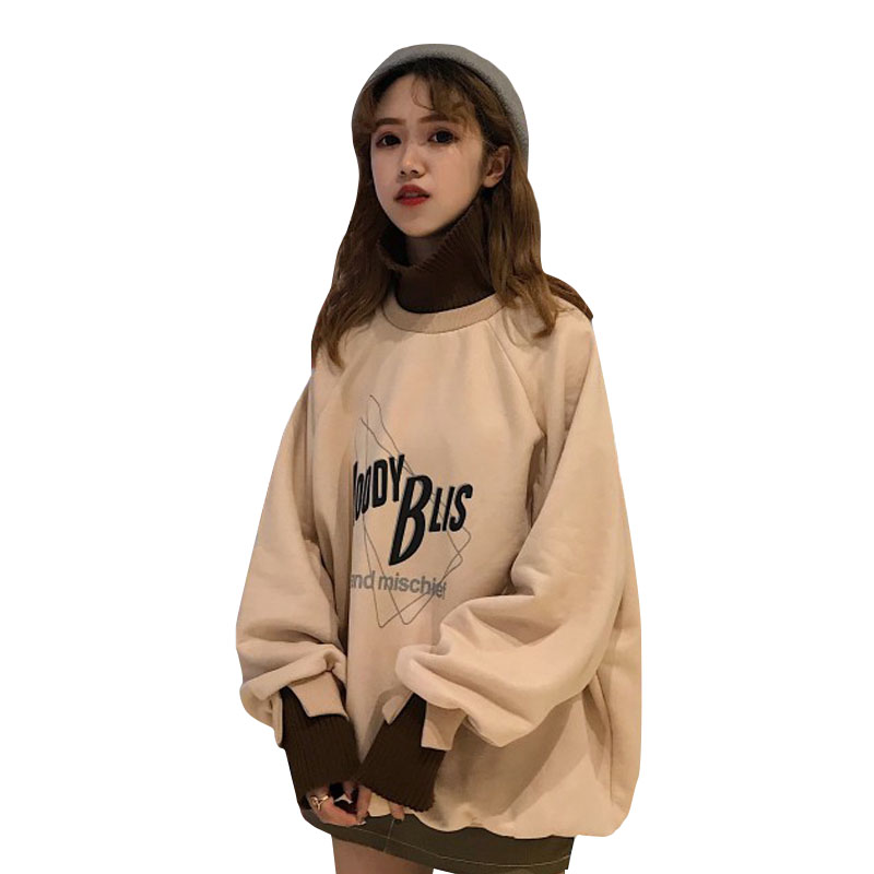 2018新款秋冬韓版原宿風寬松字母拼接高領加絨加厚超火衛衣外套女
