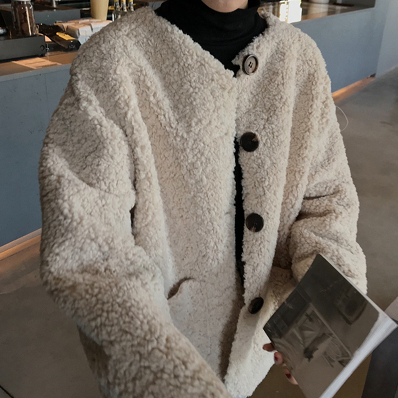 / 慵懶風中長款羊羔毛開衫女秋冬裝2018新款韓版寬松單排扣長袖外套