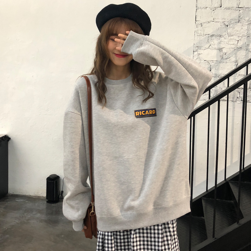 2018新款秋冬女裝韓版中長款原宿風字母加絨加厚寬松超火衛衣外套