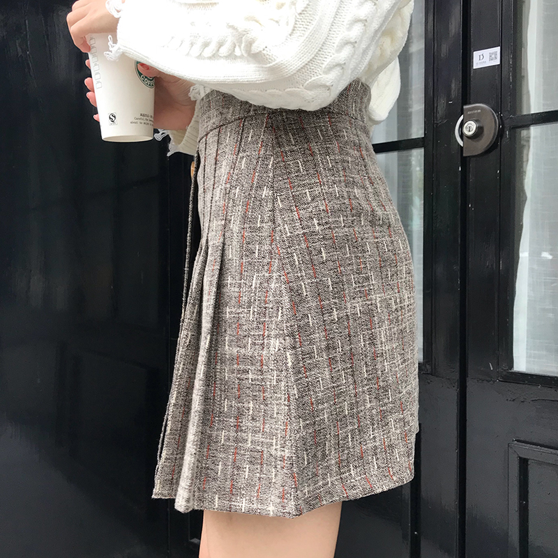 秋冬女裝2018新款學生復古風毛呢半身裙高腰顯瘦不規則A字短裙子