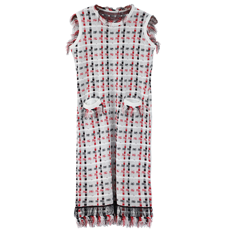 復古針織連衣裙女夏2018新款名媛氣質無袖格子顯瘦直筒裙子潮