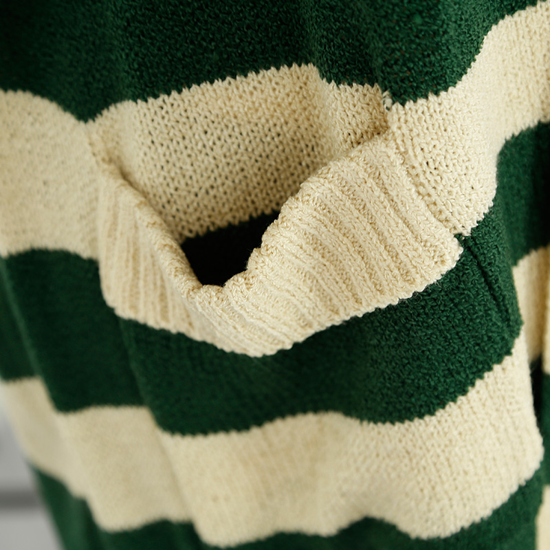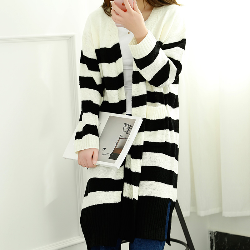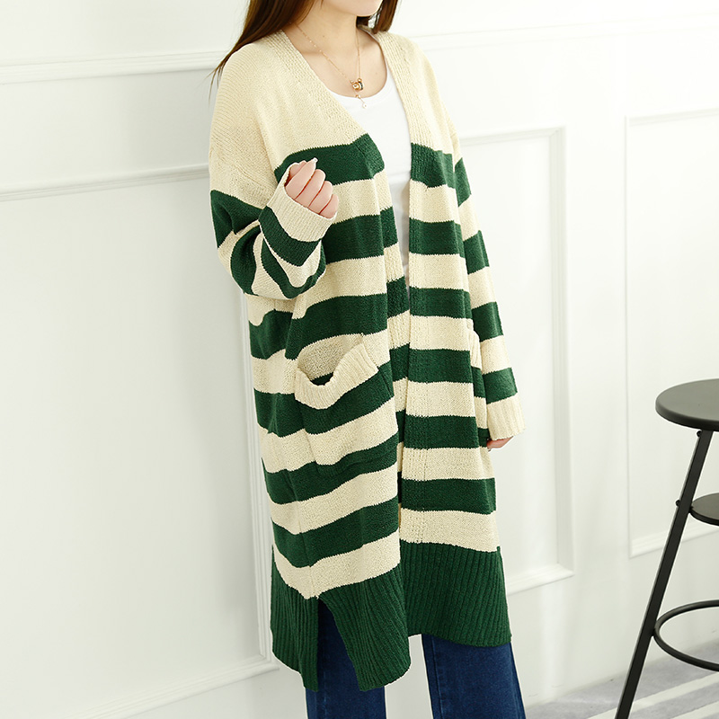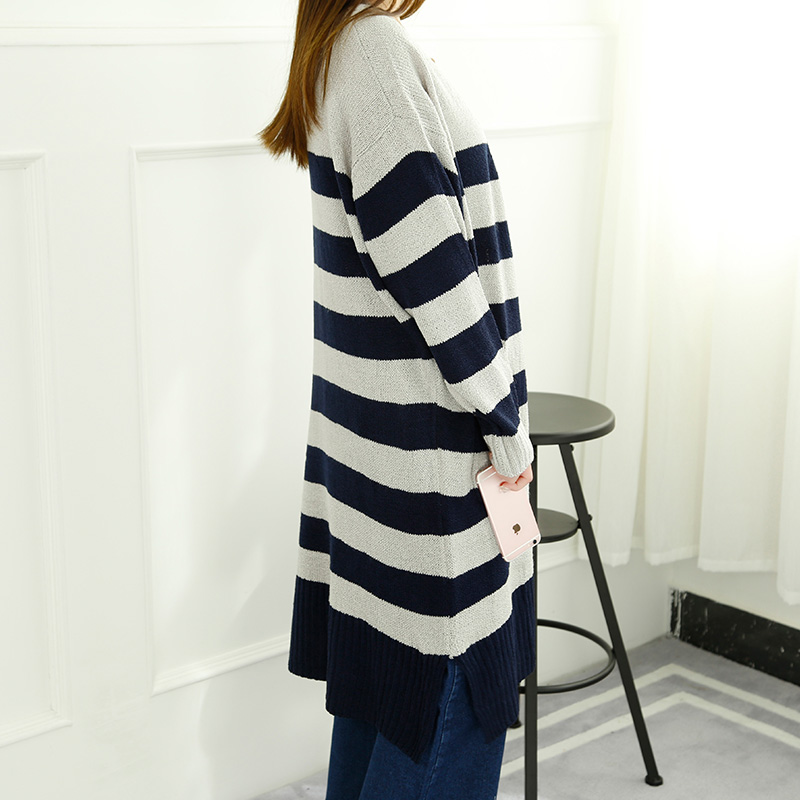 / 春裝新款女開衫韓版毛衣寬松中長款條紋長袖針織衫女裝外套潮