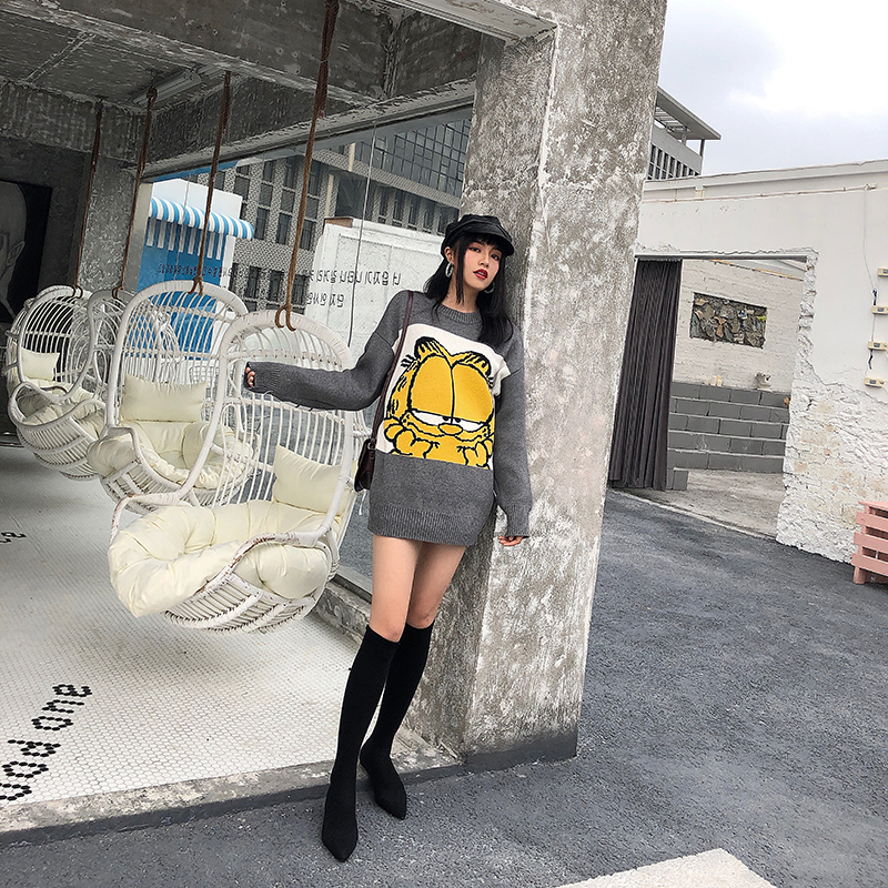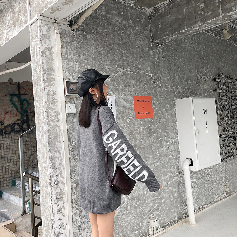 復古韓國chic風時尚卡通圖案字母寬松長袖套頭網紅毛衣女2018新款