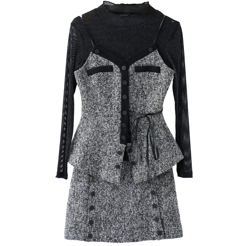 粗花毛呢吊帶毛衣半身包臀裙子三件套裝早秋冬打底套裙氣質名媛潮